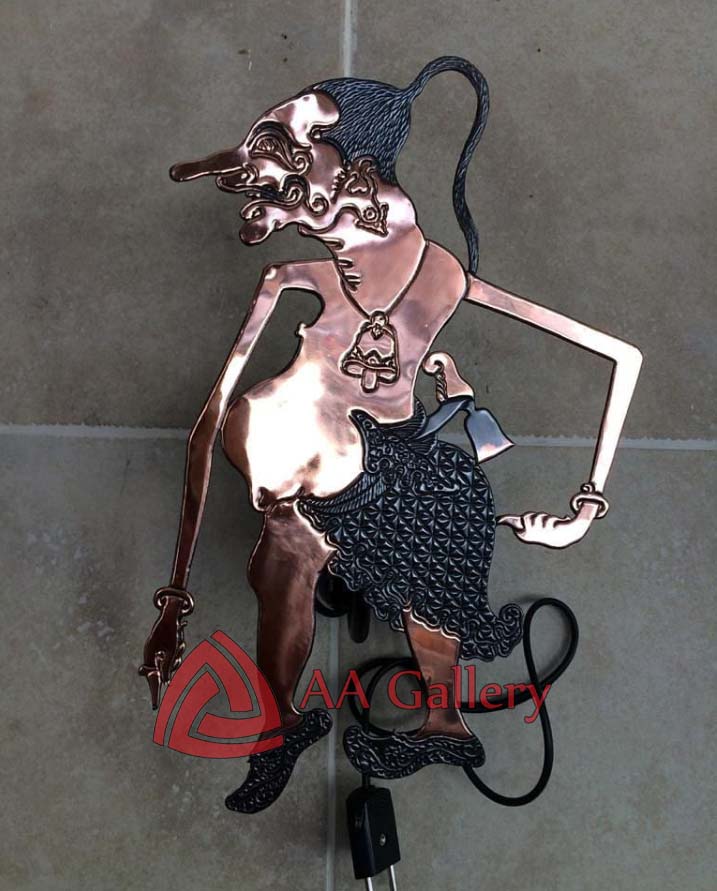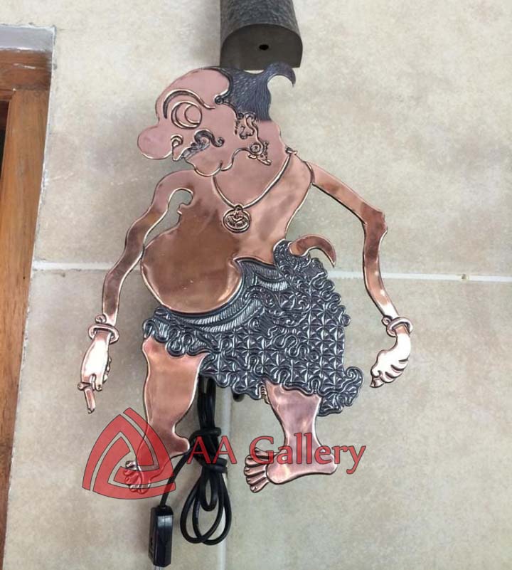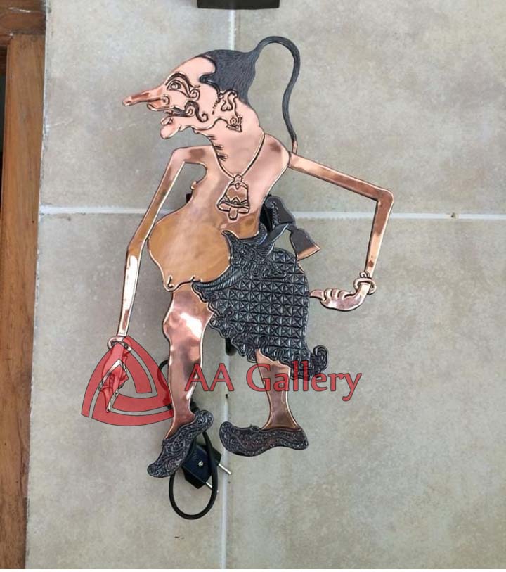 Lampu Dinding Antik Punakawan / Wayang dapat dibuat dengan berbagai bahan, namun yang disediakan oleh AAGallery adalah berbahan tembaga dan atau logam kuningan. Dengan pengalaman lebih dari 30 tahun dalam bidang kerajinan tembaga dan kuningan dapat menjamin kualitas lampu antik wayang tersebut.